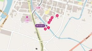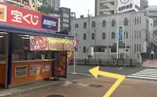 ③ 宝くじ売り場を左、川沿いをまっすぐ