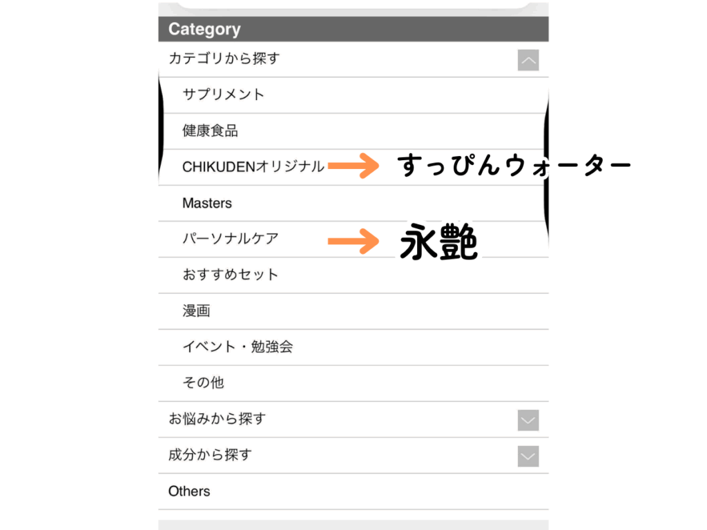 カテゴリーから商品を選びます。